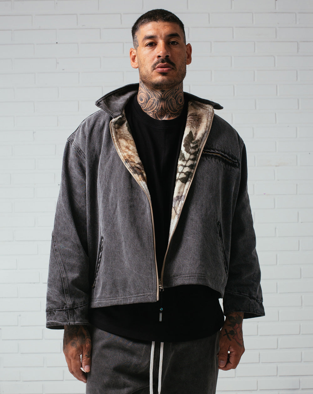 Trabalhamos com tecidos estruturados, como a sarja pesada, o fleece, o moletom premium, além de puffers e jaquetas que equilibram performance e estilo. Nossas peças carregam acabamentos que não gritam, mas marcam: botões em azul-turquesa, lavagens artesanais, recortes que sugerem movimento e volume.