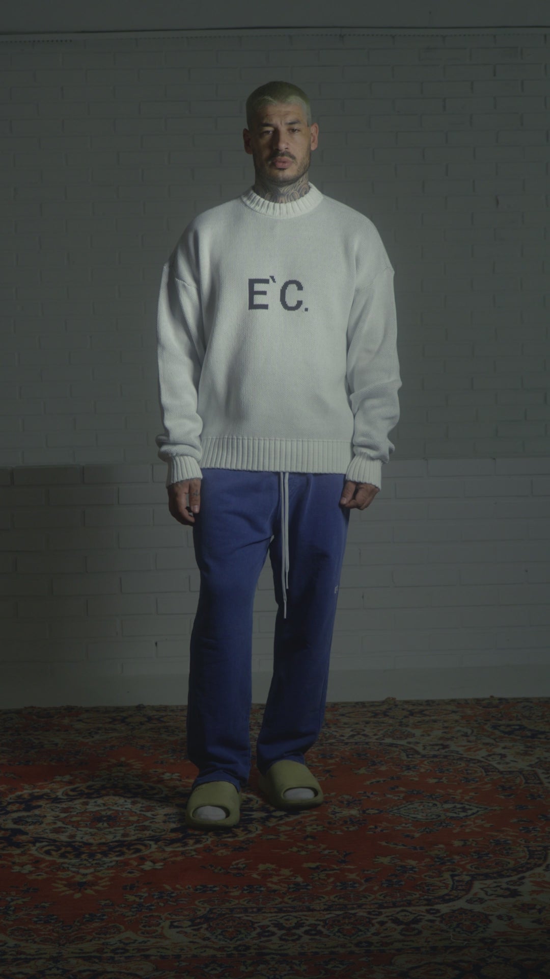 O Knitted Sweater é um blusão confeccionado em tricot duplo, que combina conforto e sofisticação. Na parte frontal, apresenta a clássica estampa E`C. Com a mesma modelagem estruturada do nosso best-seller padrão E`C. A peça é quente, pesada e excepcionalmente macia, proporcionando um toque aconchegante e de alta qualidade.