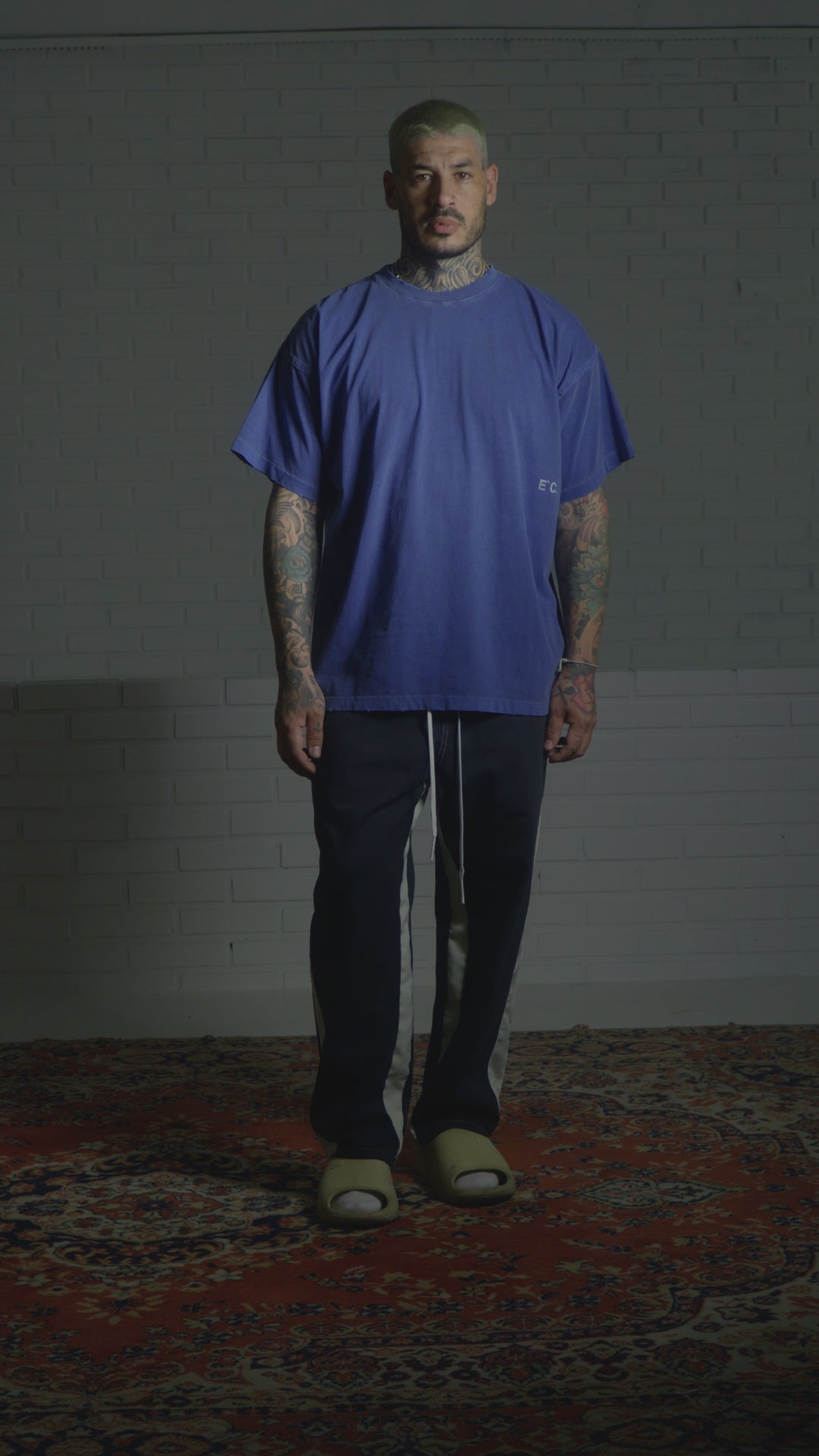 A Washed Tee Blue é uma camiseta confeccionada em malha 100% algodão, tingida e puída em lavanderia para um visual único com aspecto estonado. Sua modelagem oversized proporciona conforto e um caimento moderno, enquanto a gola em ribana e o acabamento reforçado ombro a ombro garantem durabilidade e estrutura à peça. Na parte da frente temos uma estampa em serigrafia E`C., enquanto nas costas, também em serigrafia com aspecto envelhecido, uma estampa branca Lovers e o mascote da coleção, na parte superior uma termocolante preta E`C. vazada.